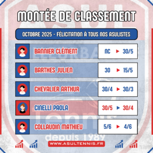 Ce mois-ci, 12 de nos licenciés sont montés de classement sur le mois de Septembre ! Vous les trouverez sur…