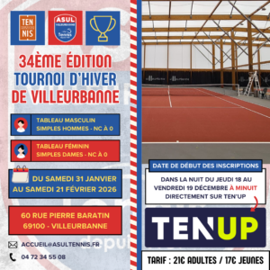 La 34ème édition de notre traditionnel Tournoi d’Hiver de Villeurbanne se déroulera du samedi 31 janvier au samedi 21 février 2026 sur les trois…
