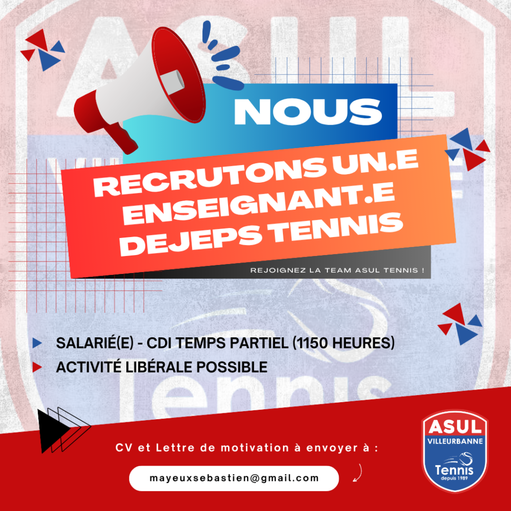 L’ASUL tennis est à la recherche d’un.e enseignant.e DEJEPS Tennis pour compléter son équipe pédagogique la saison prochaine ! N’hésitez pas à envoyer vos candidatures pour rejoindre la #TeamASUL Plus…
