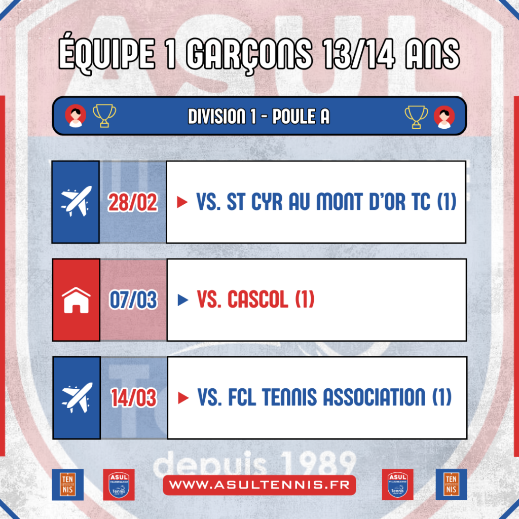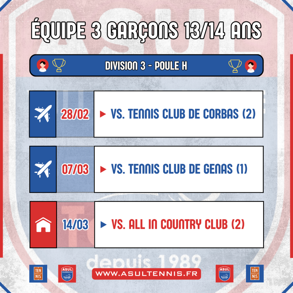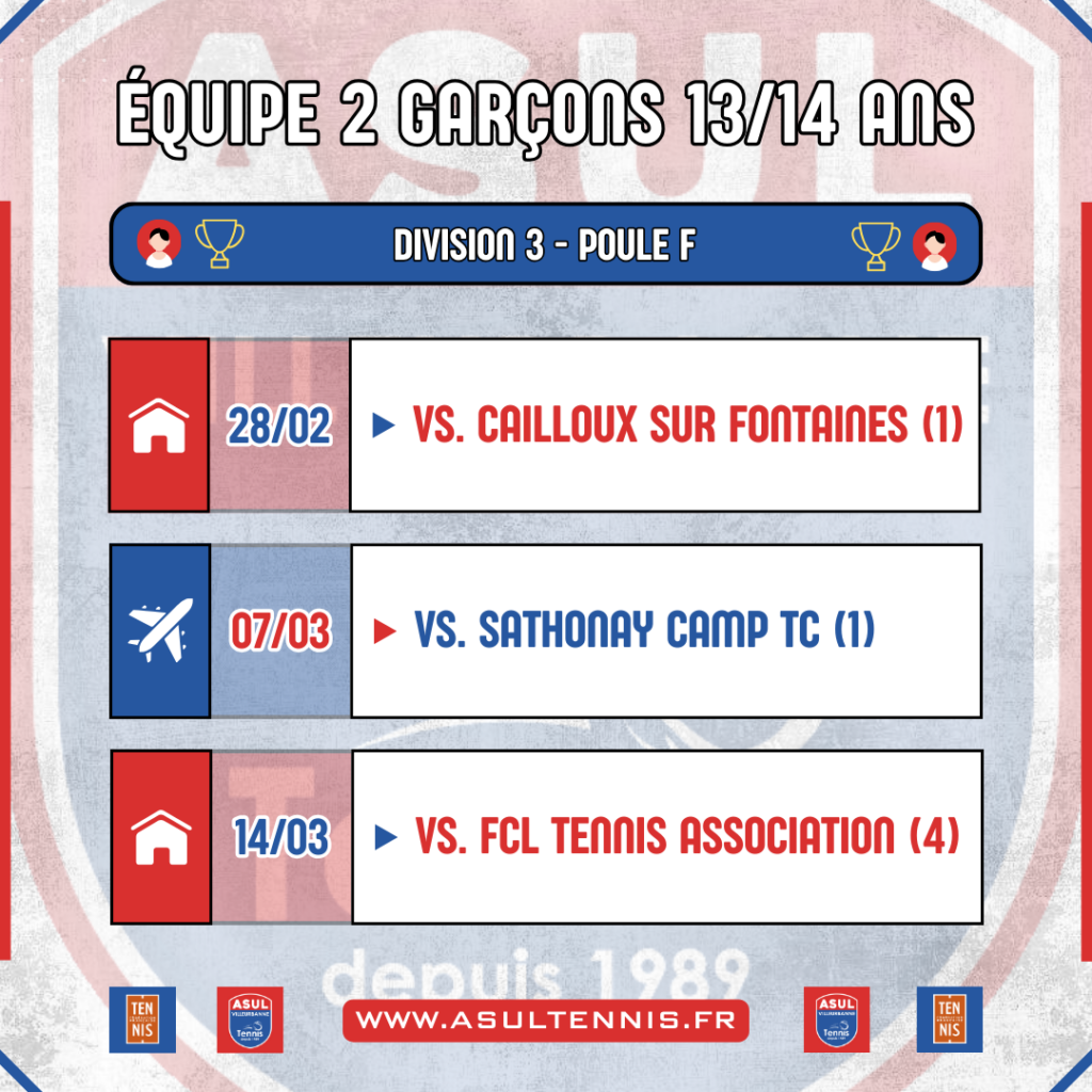 Le calendrier des Interclubs 13/14 ans est sorti !