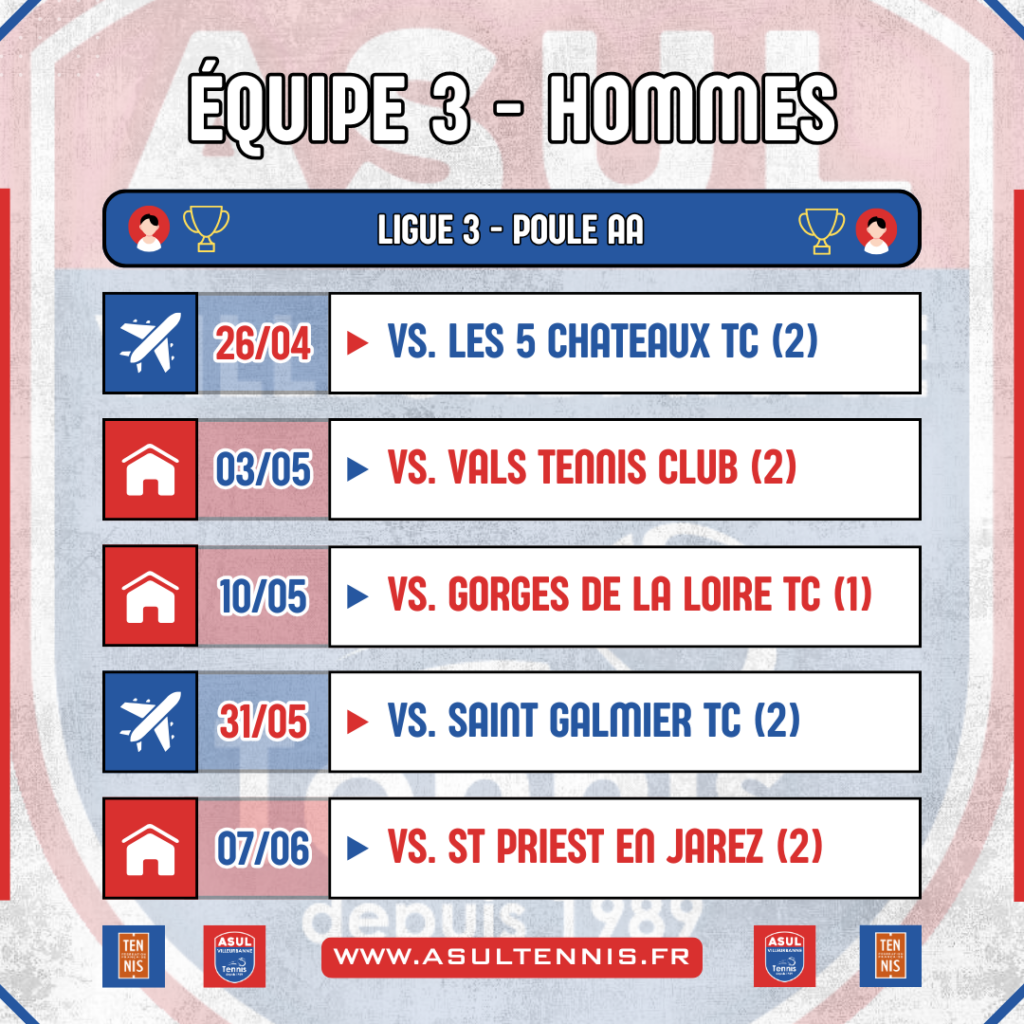 Coup d’envoi des Interclubs « séniors » le dimanche 26 avril 2026 pour nos 5 équipes engagée dans les différents championnats régionaux et pré-nationaux. Retrouvez ci-dessous le calendrier des rencontres.