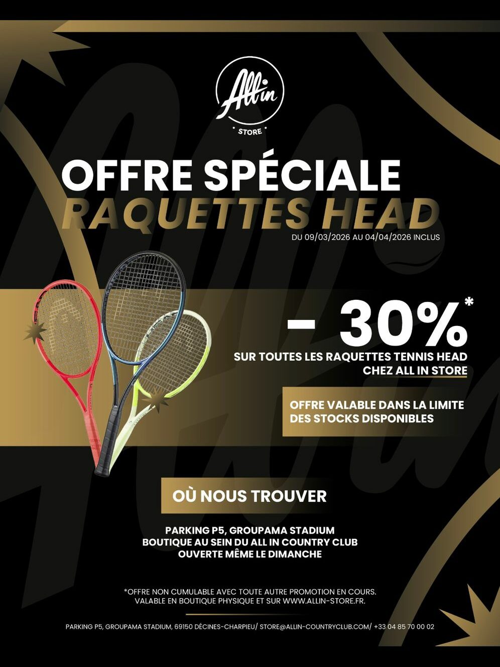 - En boutique chez All In Store (Parking P5 – Groupama Stadium, All In Country Club – Décines)